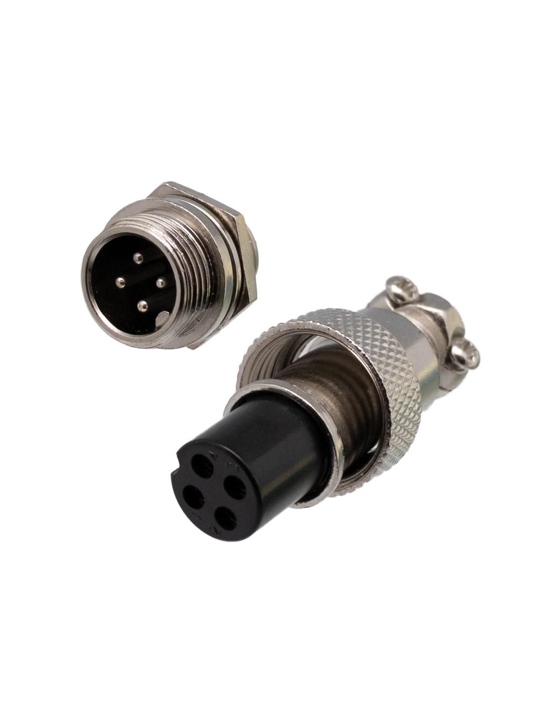 Paar 4-polige GX12-4-Steckverbinder, männlich und weiblich.