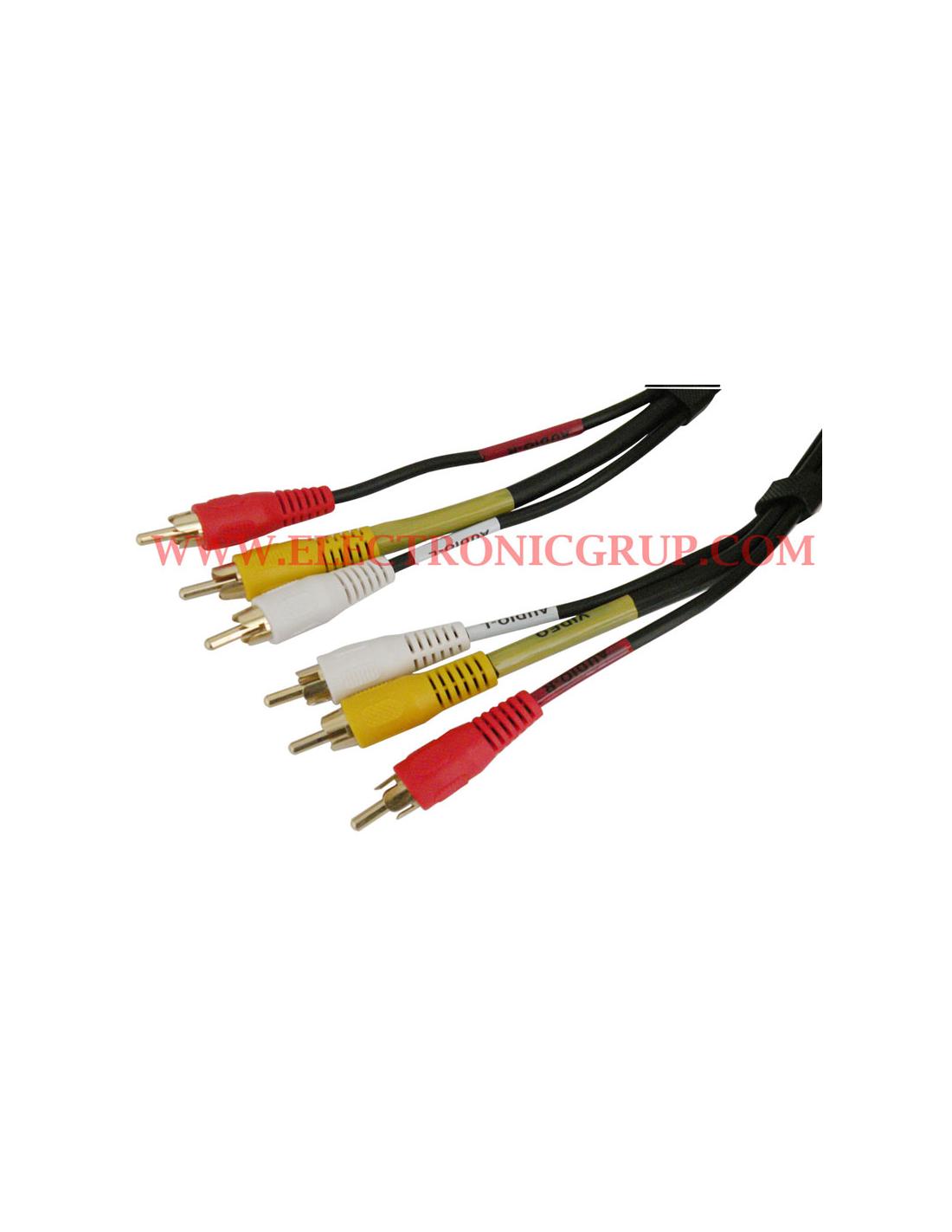 Conexión 3 RCA MACHO a 3 a RCA MACHO (Audio/Video), CONECTORES DORADOS, 5m