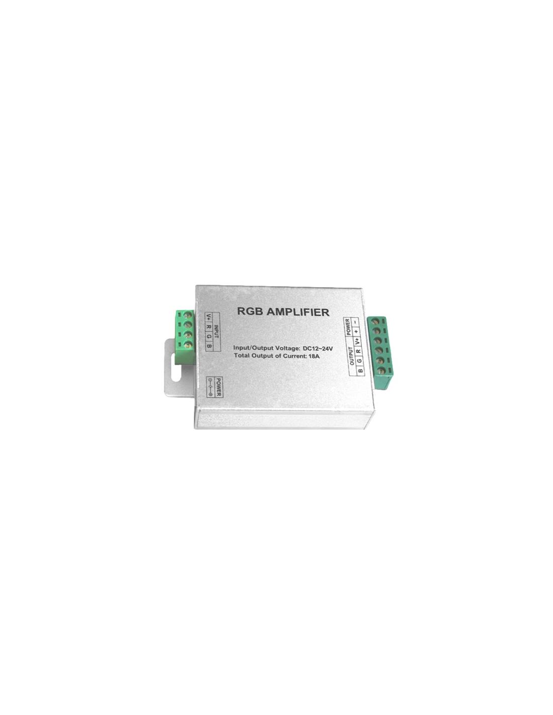 Amplificateur de signal pour bande LED. Puissance : Maximum 216W. Tension 12-24V