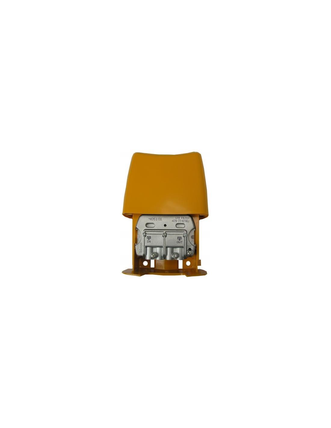 Filtro LTE/4G de alta rejeição contra interferência do canal 59. Permite que a corrente (DC) passe da saída para a entrada. Oferece caixa embutida para instalação do mastro.
