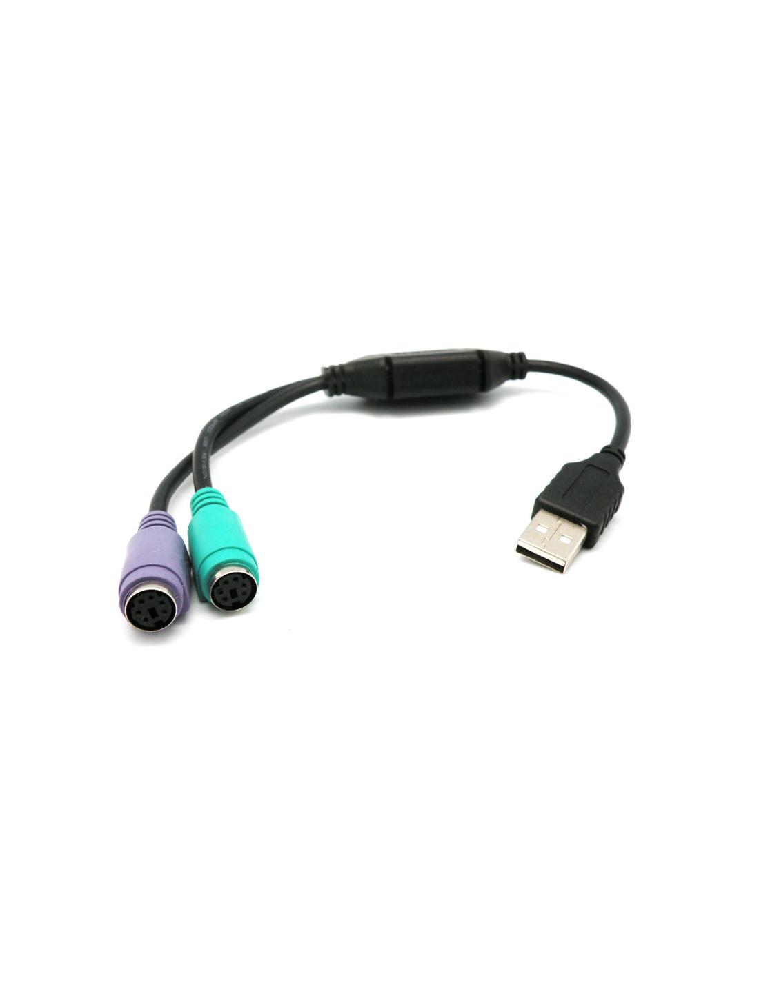 Conexão USB A Macho para 2 MiniDin 6P Fêmea, 0.2mPara ligar teclados e ratos PS2 ao PC através da porta USB